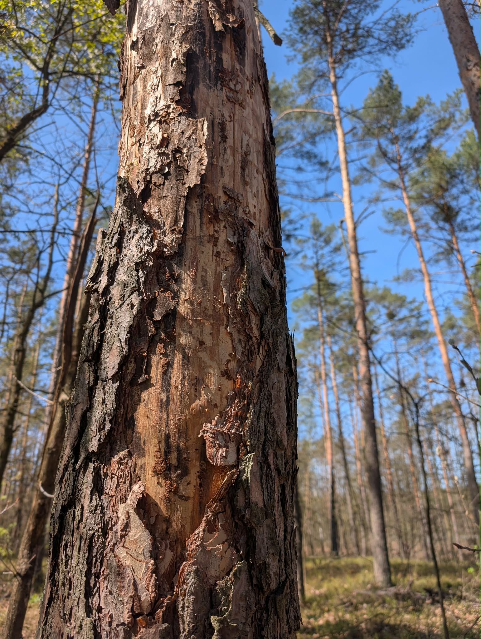 Fot. 4. Sosna z żerowiskiem tzw. szkodników wtórnych (fot. Nadleśnictwo Celestynów).